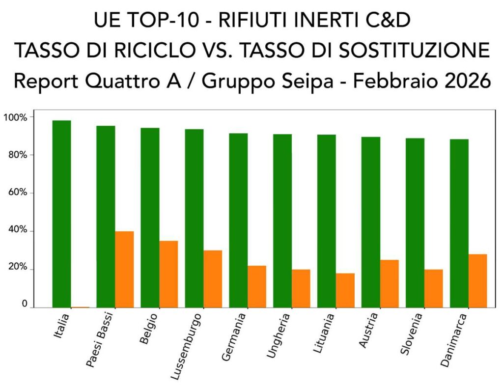 Roma, 20 febbraio 2026 – L’Europa recupera quasi tutto, ma riutilizza ancora troppo poco. È questo il messaggio centrale che emerge dal Report Febbraio 2026 diQuattro A, società del Gruppo Seipa attiva nei settori estrattivo, trasporto, recupero e riciclo dei materiali inerti e supporto alle opere infrastrutturali ed edili.