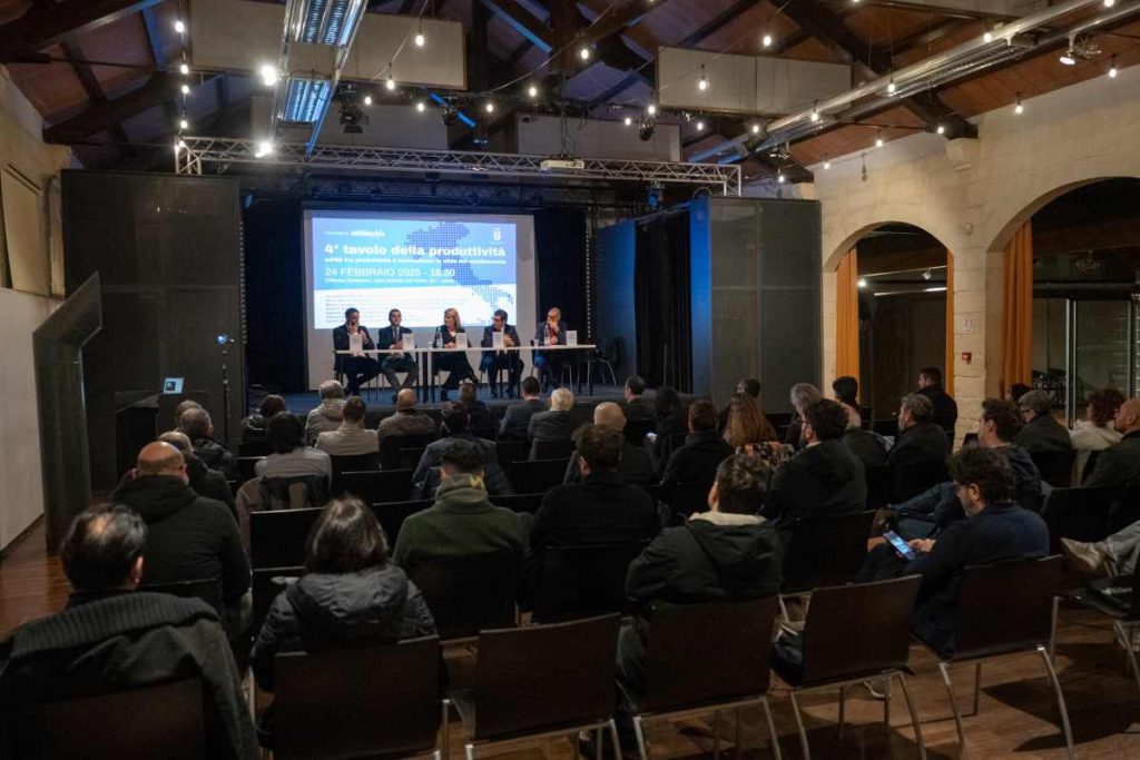 Si è svolto il 24 febbraio a Lecce, presso le Officine Cantelmo, il 4° Tavolo della Produttività, l’evento organizzato dall’Associazione Entrobordo con il patrocinio dell’amministrazione comunale di Lecce. Un appuntamento che ha riunito istituzioni, associazioni di categoria e imprenditori locali per affrontare il tema cruciale della produttività delle micro, piccole e medie imprese (mPMI) e il loro accesso a strumenti di innovazione e crescita.